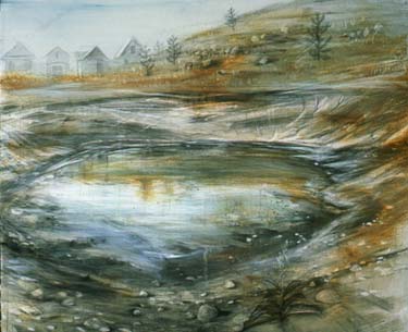 Holding Pond, rust, dry pigments on paper, 42" x 48", 2001